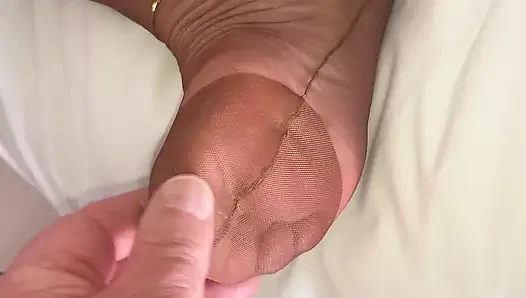 Footjob dengan kaki keju dan kaus kaki nilon bau
