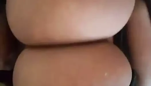 Mutiara ebony memperlihatkan payudara cokelatnya yang besar